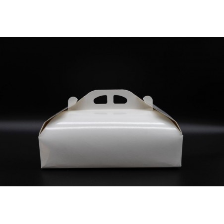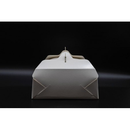 Realizzata in cartone teso. Apertura a scatto sui laterali. Una pratica maniglia rende agevole il trasporto, Interno alimentare neutro. Confezione da pz. 50.