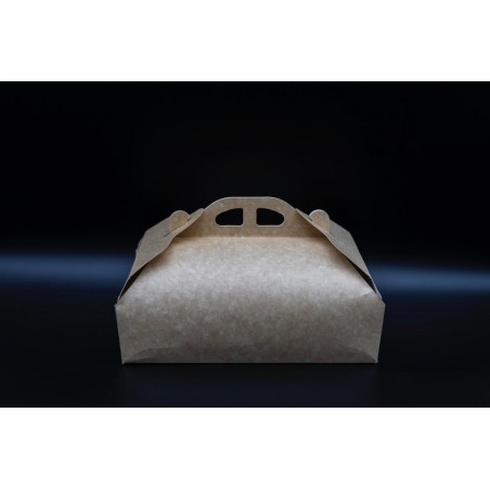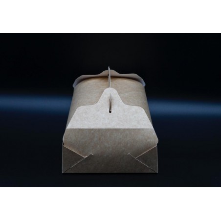 Realizzata in cartone teso. Apertura a scatto sui laterali. Una pratica maniglia rende agevole il trasporto, Interno alimentare neutro. Confezione da pz. 50.