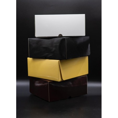 Classica scatola per torte e dolci, disponibile in quattro colori e dieci dimensioni, risulta perfetta per confezionare torte, crostate o torte sacher. È molto facile da assemblare ed è comoda da immagazzinare.realizzata con cartoncino teso, con apertura a scatto sui laterali. Interno alimentare neutro. Ogni confezione contiene 50 pezzi.