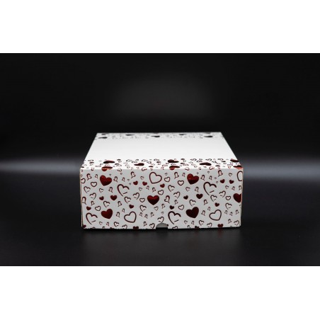 Classica scatola per torte e dolci. È molto facile da assemblare ed è comoda da immagazzinare.realizzata con cartoncino teso, con apertura a scatto sui laterali. Interno alimentare neutro. Ogni confezione contiene 50 pezzi.