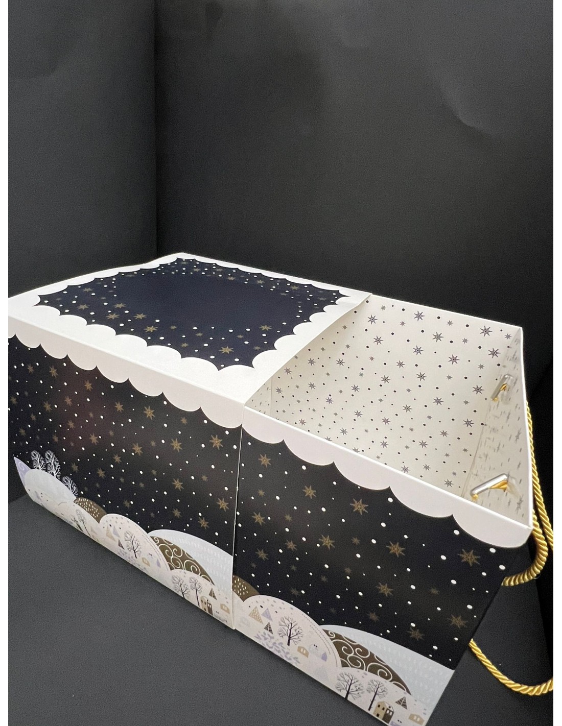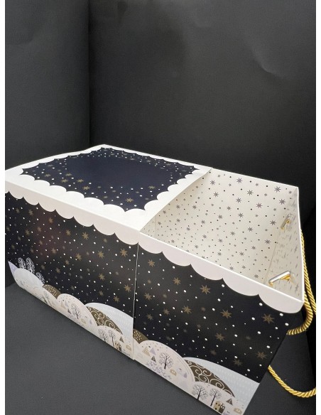 Scatola a fondo automatizzato estraibile dalla fascia a scorrimento, fornita con coppia di pregiati cordoni da passamaneria.